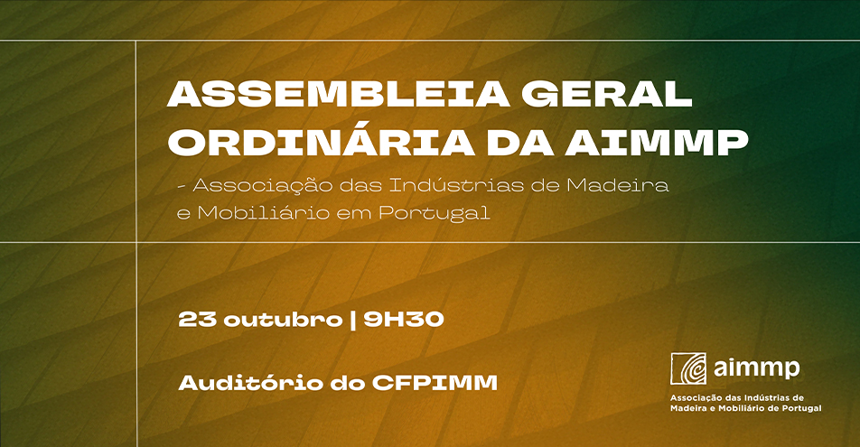 No próximo dia 23 de Outubro de 2025, pelas 9h30, irá decorrer no Auditório do CFPIMM- Centro de Formação Profissional das Indústrias de Madeira e Mobiliário, em Lordelo – Paredes, a Assembleia Geral Ordinária da AIMMP para aprovação do Relatório e Contas relativos ao exercício de 2024 e do Plano de Actividades e Orçamento para 2026.